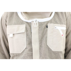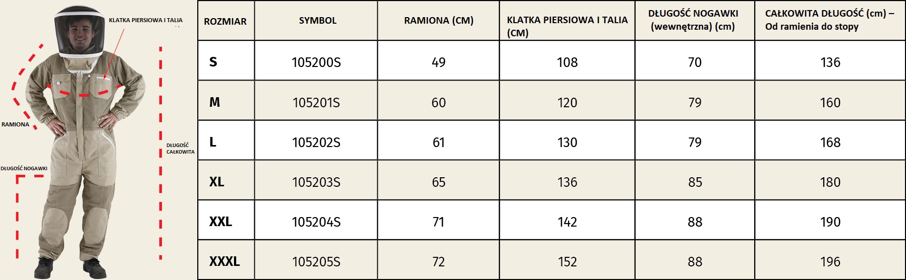 Kombinezon składa się z trzech warstw: dwóch warstw wentylowanego materiału oraz jednej grubej warstwy wentylowanej siatki, dzięki czemu żądło pszczoły nie jest w stanie dotrzeć do ciała. Strój jest zaprojektowany tak, aby służył przez wiele lat, a Swienty – jak zawsze – skupia się w 100% na jakości, komforcie, bezpieczeństwie i zrównoważonej produkcji.